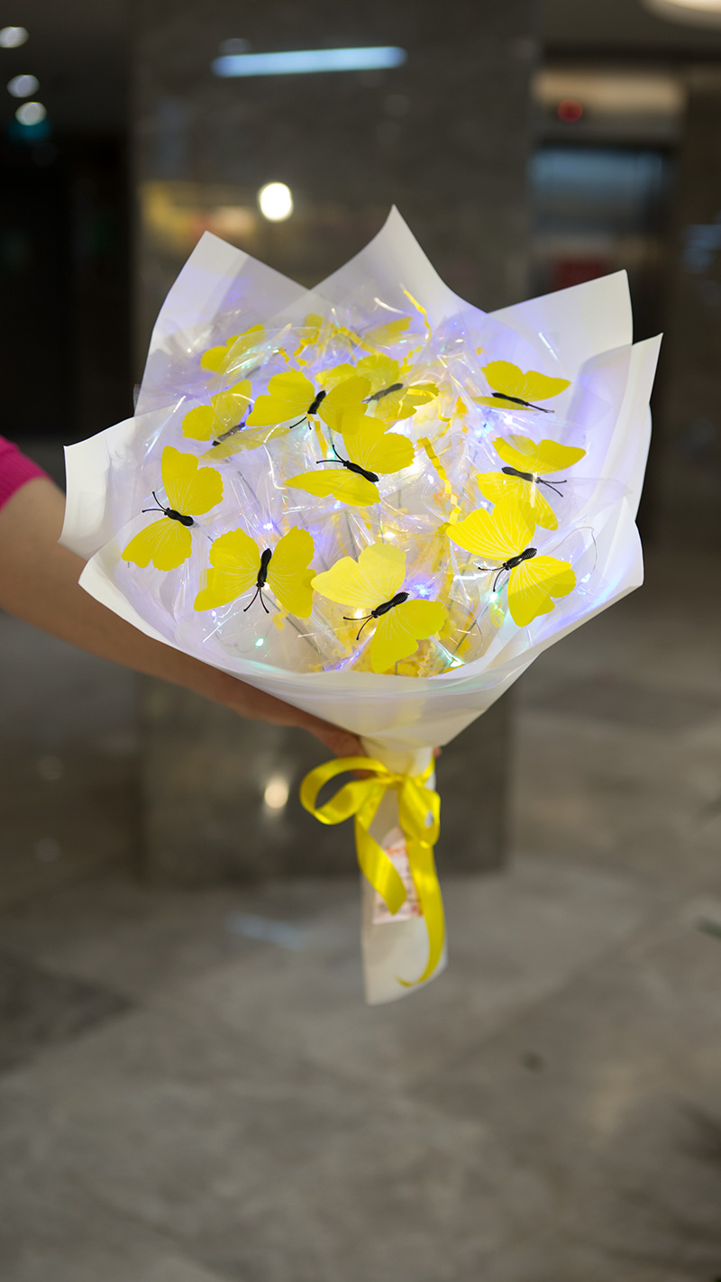 Bukette ortalama 15 adet kelebek, ışıklı aydınlatma bulunuyor. Çok satan ürünlerimizden bir tanesi.