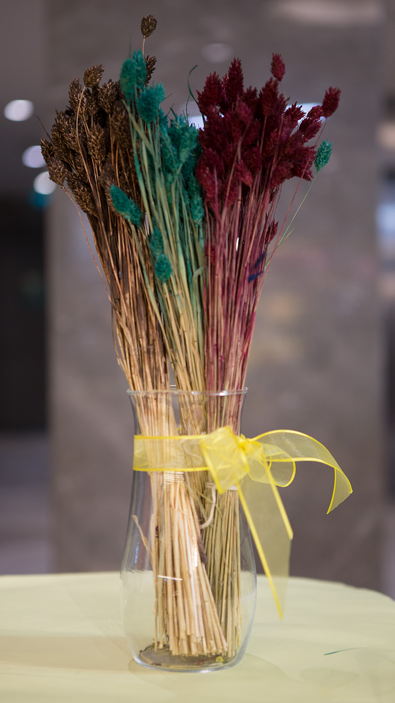 Kahverengi, yeşil, bordo renkli kuru bitki demeti. Ürüne cam vazo dahil değildir. Fiyat tek bir bağ için geçerlidir.